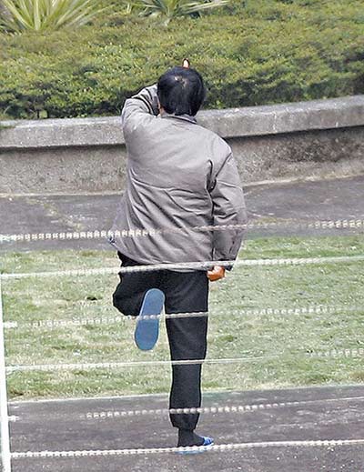 電視畫面顯示,陳水扁在放風(fēng)中,沿著看守所內(nèi)的小操場,進(jìn)行慢跑,大約持續(xù)了20多分鐘左右;放風(fēng)時(shí),也由幾名員警戒護(hù),隨時(shí)注意周邊狀況,警察也手持望遠(yuǎn)鏡,注意四周制高點(diǎn)的狀況。