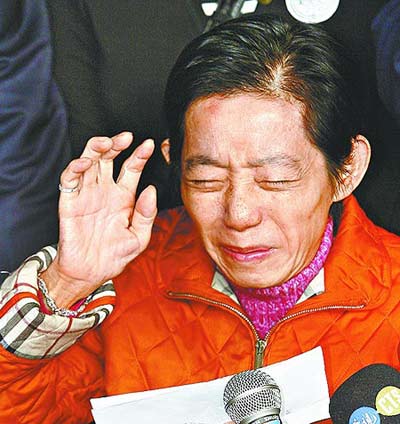 2月10日,臺北地方法院再次傳喚陳水扁之妻吳淑珍到庭應(yīng)訊,繼續(xù)審理前臺灣地區(qū)領(lǐng)導人陳水扁家所涉弊案。吳淑珍在連續(xù)17次拒不出庭后,當日終于現(xiàn)身,并在兩個半小時的庭訊結(jié)束后,發(fā)表簡短“道歉聲明”,表示今后將“隨傳隨到”。圖為吳淑珍庭訊結(jié)束后離開臺北市地方法院時,媒體圍追。 中新社發(fā) 路梅 攝