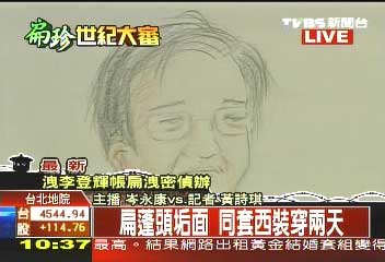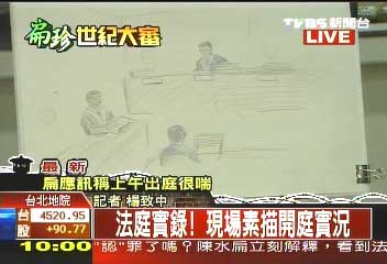 法庭素描,陳水扁蓬頭垢面,神情疲憊。TVBS圖