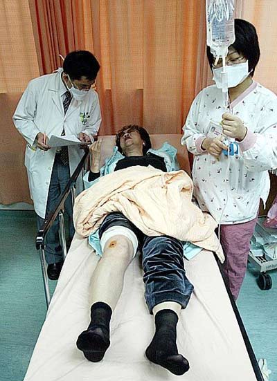 當(dāng)年公布的呂秀蓮中槍后送進(jìn)奇美醫(yī)院治療的照片。