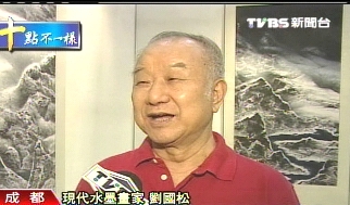據(jù)臺(tái)灣TVBS報(bào)道,微蹲馬步,劉國松在大陸水墨畫家李華生的家里揮毫,讓人們見識(shí)到他畫畫像練氣功的功夫。