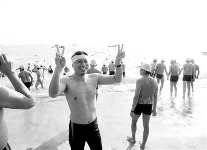 轉(zhuǎn)眼間,時(shí)間過去了半個(gè)多小時(shí),主辦方規(guī)定的結(jié)束時(shí)間到了,還有不少人舍不得上岸,只好讓救生艇出動(dòng)去清場。岸上的觀眾則熱情地等待著最后一名游泳者上岸,并報(bào)以熱烈的掌聲。(記者 葉秀月/文 吳曉平/圖)