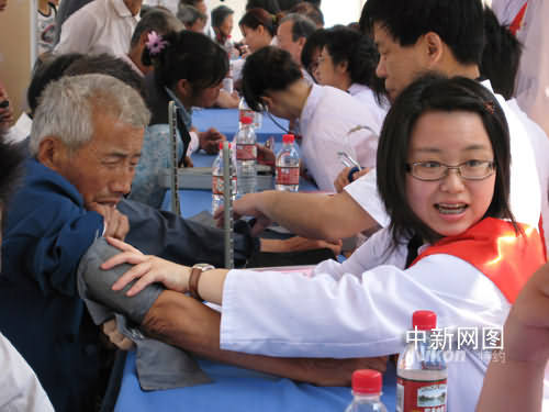 今日在六合區(qū)雄州市街道敬老院,長條課桌鋪開一溜,二十多個臺灣大學生著清一色白大褂,神情嚴肅認真、儼然“大夫”模樣。在敬老院七十五個老人面前,他們詢病問傷,量血壓、針灸、開藥方,忙得不亦樂乎。