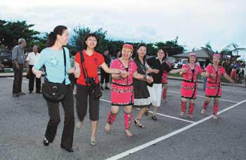 昨天傍晚,大陸踩線團又前往臺東縣。臺東縣長鄺麗貞特別帶領(lǐng)縣內(nèi)20余家旅社、飯店業(yè)者代表,前往臺東市娜路彎大飯店與踩線團餐敘,鄺麗貞除了準備數(shù)十份旅游手冊與折頁,向團員介紹臺東的風土人文,還送每名大陸團員洛神花蜜餞、太峰高山茶等臺東特產(chǎn),希望這些來自大陸各旅行社的考察團員,未來能把臺東納入陸客來臺旅游行程。