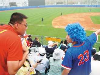 起初,大陸的加油動(dòng)作與聲浪比臺(tái)灣球迷出色,但他們不知臺(tái)灣選手的名字,加起油來很單調(diào)。不久,臺(tái)灣拉拉隊(duì)開始發(fā)威,觀眾注意力轉(zhuǎn)向三壘。連大陸的拉拉隊(duì)長也跑到臺(tái)灣球迷的觀眾席,研究共同加油方式。
