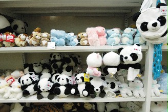 大陸贈臺熊貓團團、圓圓23赴臺,臺北市立動物園的紀念品早就有“團團、圓圓”的蹤影,各式樣熊貓的紀念品被放在明顯的位置,等候民眾購買。圖片來源:臺灣《聯(lián)合晚報》