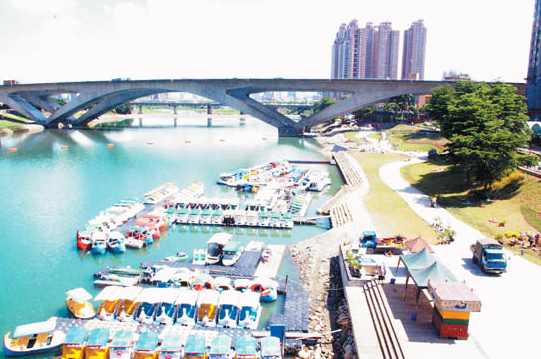 中新網9月26日電 臺灣《聯(lián)合報》刊文介紹,走出臺北捷運新店總站,進入新店路上碧潭吊橋后,映入眼簾就是臺北縣政府花費一億三千萬元新臺幣,甫于今年七月整治完成的大碧潭旗艦計劃成果?h府將碧潭打造成如同巴黎左岸風情的“水岸都心”新氣象,已成為大臺北南區(qū)水岸景觀新地標,吸引許多游客駐足欣賞。