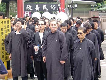 據臺灣中時電子報報道,2005年5月,在島內素有“黑道仲裁者”之稱的“蚊哥”許海清舉行喪禮,全臺各幫派動員上萬人以“輸人不輸陣”的氣勢,身著各幫派及堂口制服,甚至以“黑色人龍”之姿繞街游行臺北街頭,甚至高調的舉辦記者會,訂定“黑道平安日”,讓警方顏面無光。太“警政署”最后施以鐵腕,日后的任何一場黑道份子喪禮,均事前強力約制幫派份子參加,甚至強力掃蕩,昔日黑道喪禮的風光,幾乎已不復見。