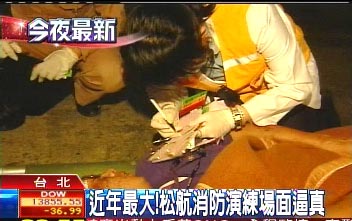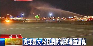 據(jù)臺灣TVBS報道,熊熊大火愈燒愈旺,松山機場火燒機,連行李都來不及拿,旅客倉皇逃命拔腿狂奔,連身穿像極了太空裝的消防隊員都出動,氣氛有夠緊張;不過,這其實只是松山機場難得的演習(xí),但場面真的很盛大。