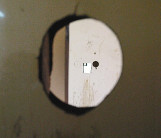 戲院的廁所,除了小號使用的便斗外,有五間“大號”的坐式廁所,每間都以很薄的三夾板作隔間,從地面算起木板上約一百厘米的高度處,都被挖了一個洞,較大的直徑約十五厘米。