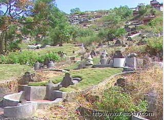 據(jù)臺灣東森新聞報道,臺北縣觀音山區(qū)公墓數(shù)以千計的往生者在這里安息,墓碑上頭的碑文記載著他們的身份以及來自何方,這橫書的兩個字,就是往生者的祖籍。