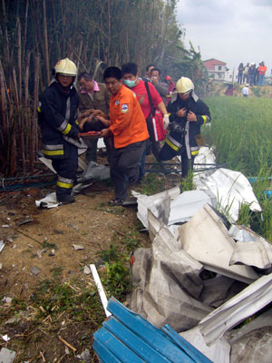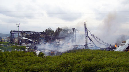 消防人員冒著大火到火場內(nèi)灌救,火場不斷傳出小型爆炸,十分嚇人,而現(xiàn)場馬路上都布滿工廠飛出的鐵皮與鋼架,連附近民家玻璃屋頂都震破得十分嚴重,滿目所見都是殘破現(xiàn)象,還有一位傷者震飛到三十多米的稻田草叢中,是被到場記者聽到哀嚎聲才通報搶救,現(xiàn)場慘不忍睹。