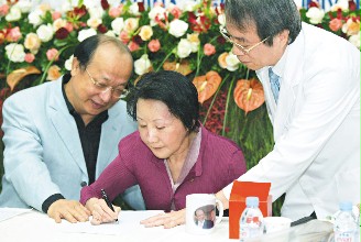中新網(wǎng)11月18日電 據(jù)臺(tái)灣《聯(lián)合報(bào)》報(bào)道,臺(tái)中市長(zhǎng)胡志強(qiáng)的夫人邵曉鈴昨天出院,她感謝所有人,并寫“Thank you”感謝醫(yī)師。主治醫(yī)師鄭隆賓說(shuō),邵曉鈴大腦受傷,掌管語(yǔ)言、空間與動(dòng)作的區(qū)域受損,連提筆都困難,筆劃更是擠成一團(tuán),字體左右相反,單是名字就學(xué)了兩個(gè)多月。