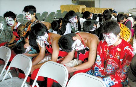 警方表示,這七十九人中有四十六人未成年,分別來自彰化、南投、臺(tái)中縣市,多半是中途輟學(xué)生,年紀(jì)最小的只有小學(xué)六年級(jí)。他們被帶回警局驗(yàn)?zāi)驎r(shí),有的身上還穿著表演服裝,臉上畫著大花臉,并露出大面積的刺青。