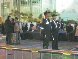 現(xiàn)場氣氛尷尬,因舞臺前主辦單位還安排了兩位真警察站崗,兩位警察見狀,一動(dòng)也不動(dòng)。記者問:“你看了覺得如何?”警察氣憤地說:“有很多人來問我,但那些一看就知道是假的!睋(jù)悉,最后該活動(dòng)仍選出比基尼冠軍,巧的是,得獎(jiǎng)的女子又是脫掉比基尼用手遮住重點(diǎn)的舞者。
