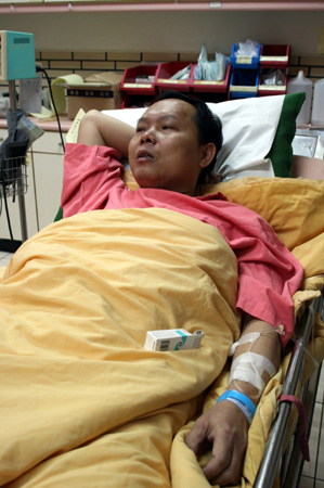 獲救船員彭伯武躺在病房上,臉露驚恐,他說,當時風浪大,等到發(fā)現(xiàn)不對勁,大家穿上救生衣,還來不及拿多余的東西,船就沉了,全部的人都泡在冰冷的海水,風大浪大,眼睛根本張不開,要不是自己水性好,早就沒命。