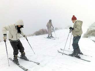 義守大學(xué)學(xué)生陳泉潣和讀暨南大學(xué)的表弟候鈞元,扛著12公斤裝備上合歡山,“沒想到臺灣也能滑雪!”他滑了好多趟,都沒摔跤,“追雪、賞雪不稀奇,到合歡山滑雪才夠酷!”