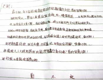 他在警訊時淚如雨下說:“我真的知道錯了!”同學(xué)新年后用紅包買新手機(jī),他很羨慕,才會一時起貪念偷手機(jī),之后整晚睡不著。想起老師講過“華盛頓砍櫻桃樹”的故事,覺得自己也應(yīng)該勇于認(rèn)錯,于是邊哭邊寫道歉信。