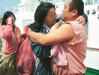 徐東誠(chéng)是臺(tái)東區(qū)漁會(huì)常務(wù)監(jiān)事,妻女昨天趕到馬公港等他回來(lái),三人在岸上相擁而泣。太太趙淑敏表示,回家一定要老公吃豬腳面線壓驚。林亞貢獲救后則說(shuō):“臺(tái)灣人說(shuō)我是大陸人,但在海上,我們是一家人。”
