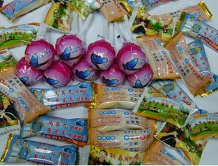 去年底“立委”選選戰(zhàn)開打在臺南縣還沒看到糖果外包裝加注候選人廣告,事過4個月,候選人的廣告就有了糖果廣告,甚至連棒棒糖都出爐。