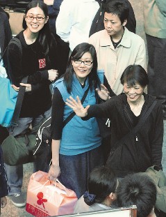 周美青母女昨天下午二時(shí)十五分搭車抵達(dá)桃園機(jī)場,到達(dá)前臺“國安局”、“航警局”等單位就出動了數(shù)十名警力,采取高規(guī)格的維安勤務(wù)部署。不過周美青母女不同意禮遇通關(guān),下車后直接走到華航經(jīng)濟(jì)艙排隊(duì)旅客長龍的尾端排隊(duì)。