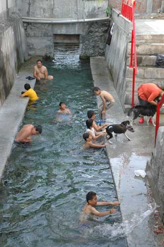 民眾熱的受不了,辦公室上班民眾打開(kāi)冷氣,老人家則聚在樹(shù)下乘涼,小朋友則前往溪流戲水消暑。