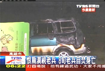 據(jù)臺(tái)灣TVBS報(bào)道,事發(fā)現(xiàn)場(chǎng),小客車(chē)被燒得只剩支架。疑似用汽油引火自焚的男子,是已經(jīng)高齡80歲的老兵許昭榮。