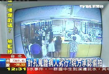 據(jù)臺(tái)灣TVBS電視臺(tái)報(bào)道,這個(gè)醫(yī)院堅(jiān)稱是消防灑水系統(tǒng)的噴口竟然是監(jiān)視錄像機(jī),臺(tái)北市議員接獲投訴,醫(yī)院裝針孔偷拍病人,火氣很大。臺(tái)北市議員莊瑞雄說,“你們到底要看什么?因?yàn)槟且婚g不是保護(hù)病房呀,除了保護(hù)病房,是不能裝這個(gè)(監(jiān)視器)的呀,醫(yī)學(xué)院應(yīng)該都有念到呀!