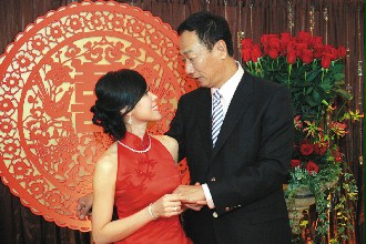 郭臺銘與曾馨瑩周六婚禮,邀請國民黨榮譽主席連戰(zhàn)當證婚人。郭曾訂婚之后,曾馨瑩明天預(yù)計將舉行結(jié)束單身派對,邀請好友參加。7月26日晚上郭臺銘將正式迎娶曾馨瑩進門,27日曾馨瑩則辦歸寧宴,請同學朋友以及娛樂圈友人等,以歐式自助餐方式進行。由于郭臺銘決定結(jié)婚日期及發(fā)喜帖的日子非常緊迫,有許多已排好行程的好友,無法參加,因此郭臺銘會再以其它方式宴請好友。