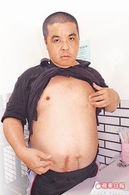 方某掀起衣服,顯示腹部留下當年遭以細針逼供后開刀治療留下的疤痕。(圖:臺灣《蘋果日報》)
