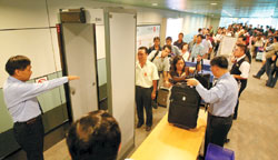 無論通關(guān)后或登機(jī)前,都有安檢人員特別“伺候”,把每一個(gè)旅客的行李都打開檢查。男性安檢人員有時(shí)還要檢查女性的衣物,引來一陣尷尬。