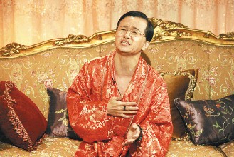 本來就跟馬英九長得像的張明興,也是“寶來秘密花園”中的?停看蝿∏槎及才拧榜R英久”深夜造訪匾家,兩人共商“國事”。教馬英久“一哭二跪三愛臺”三招。阿匾說“不管是對付老婆還是對付選民,只要你一落下男兒淚馬上管用,如果哭不出來,就用生理食鹽水,如果用哭的還不行,那就當(dāng)場跪下,最后再使出大絕招高喊‘愛臺灣’!”