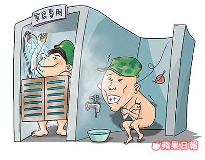 中新網(wǎng)9月8日電 臺(tái)軍聯(lián)勤馬祖某指揮部近日爆發(fā)四十多名士官兵超時(shí)清點(diǎn)彈藥后無(wú)法洗熱水澡,但指揮部?jī)?nèi)的軍官卻夜夜沖熱水澡,一名阿兵哥抨擊此舉是“集體虐兵”,讓阿兵哥洗澡前“害怕”,洗后“很冷”。