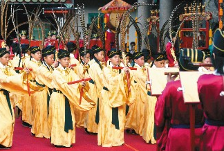 中新網(wǎng)9月28日電 臺北市孔廟過去都是用六佾舞祭孔,今年因孔廟整修完畢,加上馬英九將以貴賓身份出席孔廟祭典,特別擴(kuò)大規(guī)模以天子之禮的八佾舞呈獻(xiàn)上天,對孔子表達(dá)最崇高的敬意。
