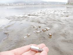 據(jù)臺灣《中國時報》報道,一名陳姓釣客12日中午趁淡水河退潮,前往事發(fā)的沙洲帶釣魚,發(fā)現(xiàn)距離河岸十米的沙洲泥土中出現(xiàn)大量銀色小圓點,在陽光折射下更顯刺眼,原以為是釣魚用的鉛球,靠近一看才確認是未擊發(fā)的子彈。