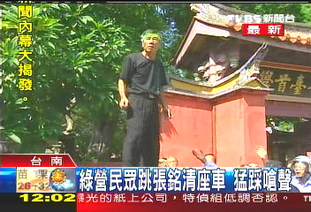 中新網(wǎng)10月23日電 大陸海協(xié)會副會長張銘清在臺南遭到襲擊,跳上張銘清座車車頂狂踹的民進(jìn)黨員林進(jìn)勛今天出面向黨部自請?zhí)幏帧?