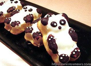 業(yè)者說從九月起就開始研發(fā)這一款“熊貓蛋糕”,以因應即將來臨的“熊貓熱”。業(yè)者說,可愛的熊貓造型,黑跟白的部分都是用瑞士來的巧克力,吃起來甜卻不膩,加上上面所黏的椰絲,越咀嚼越香,非常好吃。而且里頭還加了來自瑞士的糖漬柑橘丁,配上一些新鮮柳橙皮,增加果香。讓熊貓蛋糕咬下去口感豐富,一口接一口,細細咀嚼中還可以感受椰絲香氣。