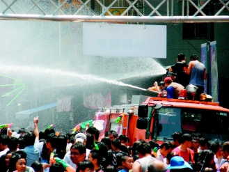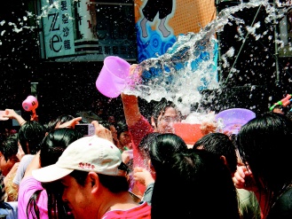 中新網(wǎng)4月13日電 臺(tái)灣臺(tái)北縣“中和市2009潑水節(jié)”昨天上午在南勢(shì)角捷運(yùn)站盛大登場(chǎng),民眾拿著水槍、水瓢、水桶到處噴灑開(kāi)戰(zhàn),臺(tái)北縣消防局也調(diào)派兩輛消防水車加入戰(zhàn)局,超強(qiáng)水柱掃射現(xiàn)場(chǎng)民眾,讓民眾遇水則發(fā),氣氛夯到最高點(diǎn),樂(lè)到不行。