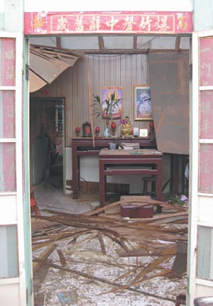 篤信佛教的她說,趕緊回屋,發(fā)現(xiàn)三十坪大的屋內(nèi)滿目瘡痍,電視、冰箱全倒,杯碗散落一地,亂成一團;“還好客廳供奉的佛祖神像沒有受損”,仍安穩(wěn)坐在供桌上!澳芴舆^一劫,真是神明有保佑!”