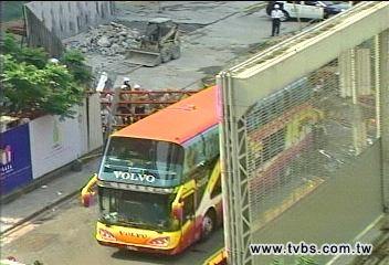 臺北市消防局表示,下午1時54分松高路19號工地發(fā)生起重機吊臂掉落,砸中1輛停在路旁、載著25名大陸游客的游覽車尾端,目前傷者已經(jīng)送醫(yī)急救。