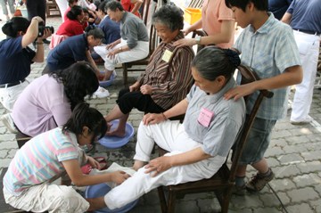 “看到媽媽的腳歷盡風霜長了繭,因日曬留下雙色的印記,內(nèi)心真是百感交集,頓時體悟到必須更貼心、用心地孝敬媽媽。”一名江姓小姐在為媽媽浴足后道出心中的感動,F(xiàn)場不少媽媽及子女在浴足的過程都滿懷感動,有人眼眶泛紅遲遲難以言語,有人不禁流下激動的淚水,讓旁人也強烈感受濃濃的孝親之情。