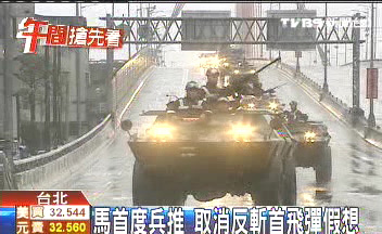 凌晨5點(diǎn),天色才剛亮起,負(fù)責(zé)保衛(wèi)博愛(ài)特區(qū)的憲兵202指揮部大批甲車緩緩開出,第二輛六輪甲車正是到中興寓所護(hù)送馬英九的萬(wàn)鈞車,這是馬英九上任后,首度主持兵推。