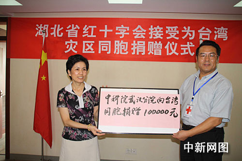 除上述100萬元人民幣的捐款外,連日來,已陸續(xù)有武漢市民在湖北省紅十字會登記捐贈。8月19日下午,湖北省紅十字會機關(guān)也開展了募捐活動,湖北省紅十字會專職副會長毛三元帶頭捐款500元人民幣。中國科學(xué)院武漢分院黨組書記、常務(wù)副院長陳平平專程趕到湖北省紅十字會,代表該院向臺灣同胞捐贈10萬元人民幣。