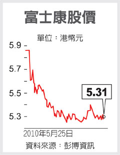 據(jù)臺灣《中國時報》報道,富士康昨日股價重挫近一成,終場下跌0.57港元、收5.31港元,跌幅達9.69%。