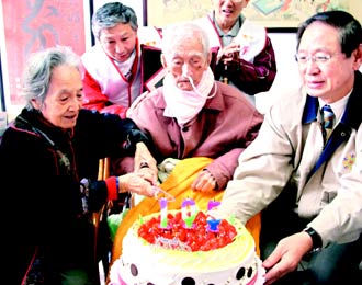 據(jù)臺灣《聯(lián)合報》報道,臺灣桃園榮民服務處長張占魁昨天偕志工為王邁夫祝壽,當熊長貞看著插著鼻胃管的老伴說出“來世再做夫妻”時,每人都動容。
