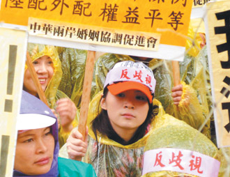 諷刺的是,現(xiàn)在臺(tái)灣上下只想賺大陸人的錢,挹注臺(tái)灣頹圮的經(jīng)濟(jì)。可臺(tái)灣社會(huì)有善待人家的女兒?jiǎn)?政策不公無(wú)形中增加大陸配偶的高離婚率。