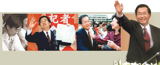 1986年,陳水扁擔(dān)任臺(tái)北市議員,因蓬萊島事件入獄,但也為他政治生涯加分;擔(dān)任“立委”期間,他一再揭發(fā)軍購(gòu)弊案,被民間團(tuán)體票選為第一名“立委”;1994年,他當(dāng)選臺(tái)北市長(zhǎng),施政滿意度一度高達(dá)76%;2000年,他當(dāng)選第一次政黨輪替的臺(tái)灣地區(qū)領(lǐng)導(dǎo)人;昨天,他卻成為第一位手銬加身的前領(lǐng)導(dǎo)人。