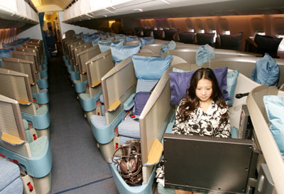 中新網(wǎng)10月25日電 據(jù)“中央社”報道,香港國泰航空引進全新的波音777-300 ER客機二十五日首航至臺北,其中最新的商務(wù)艙,以魚骨形排列設(shè)計讓旅客充分保有私人空間。