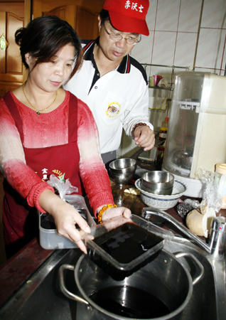 金門縣金寧鄉(xiāng)安岐村住戶自來水管,二十五日中午流出黑色污水,嚇壞村民!爸醒肷纭眻D 倪國炎 攝