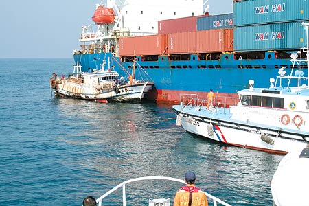 圖:臺(tái)灣漁船與萬噸貨輪迎頭對(duì)撞
